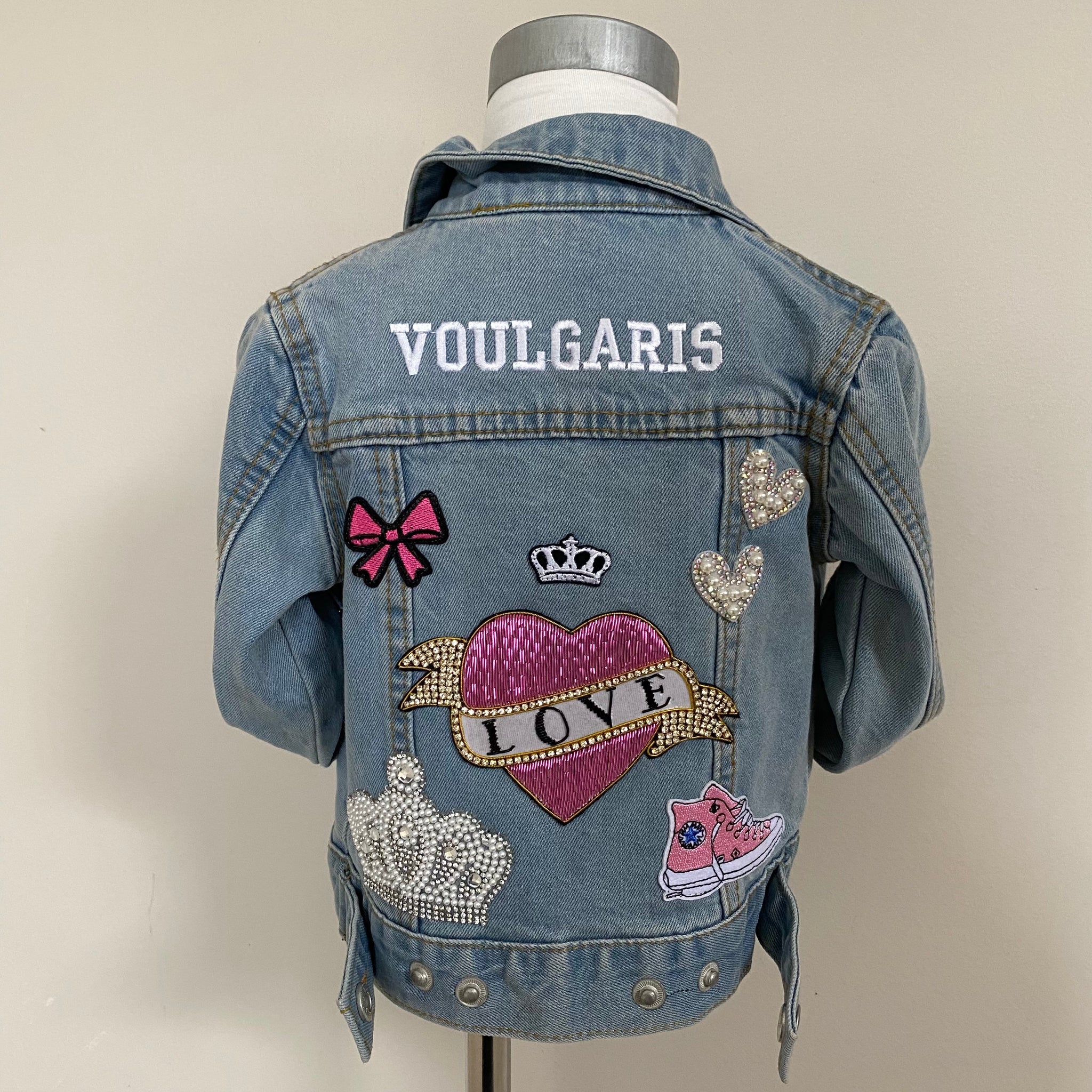 *Jacket on display in the photo is a size 1-2 in Original Blue Denim, and the Name Personalisation Font is College in White thread