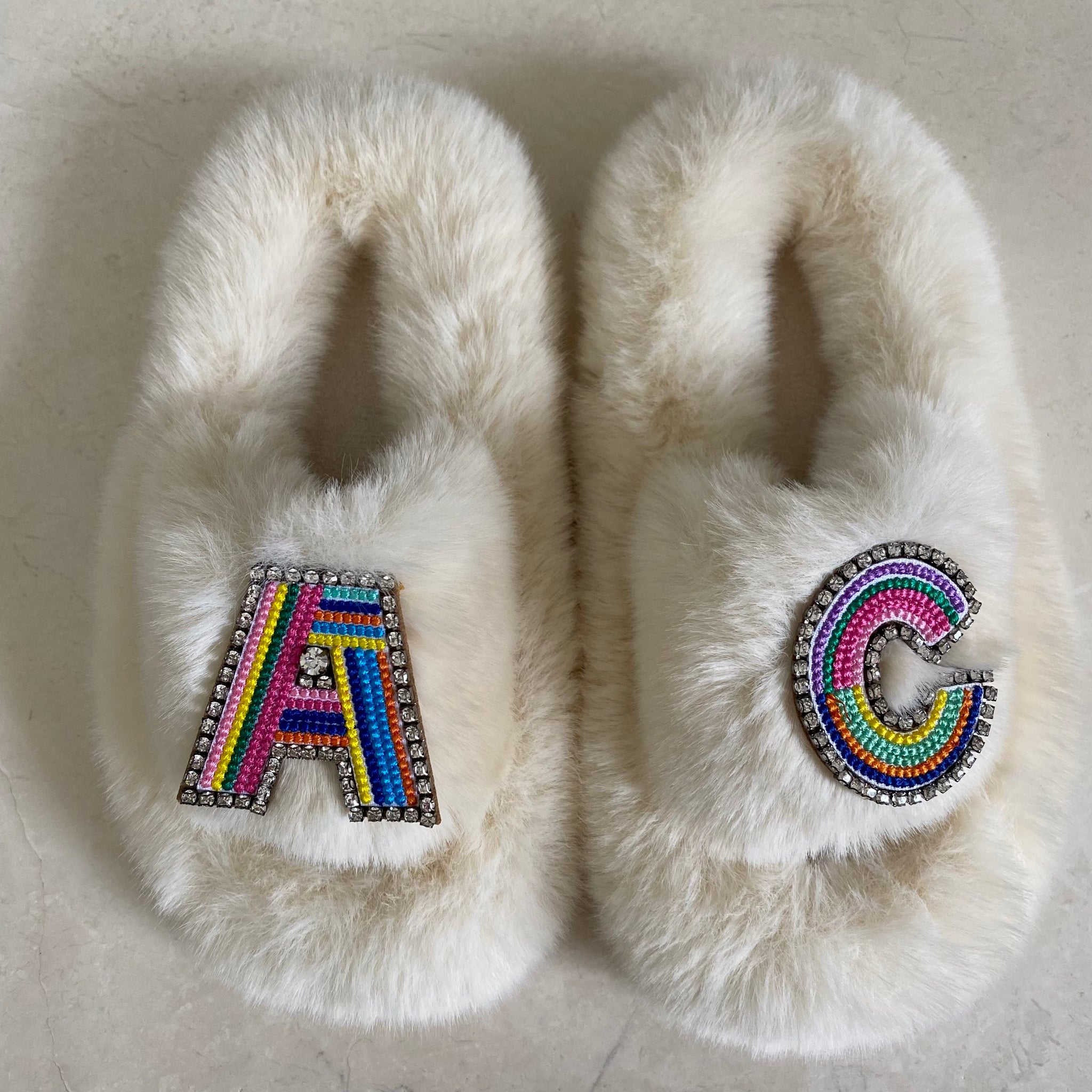 Personalise these slippers by... selecting the child's initials! You have three styles to choose from. The initials are brooches so they can be removed and used on other garments!
