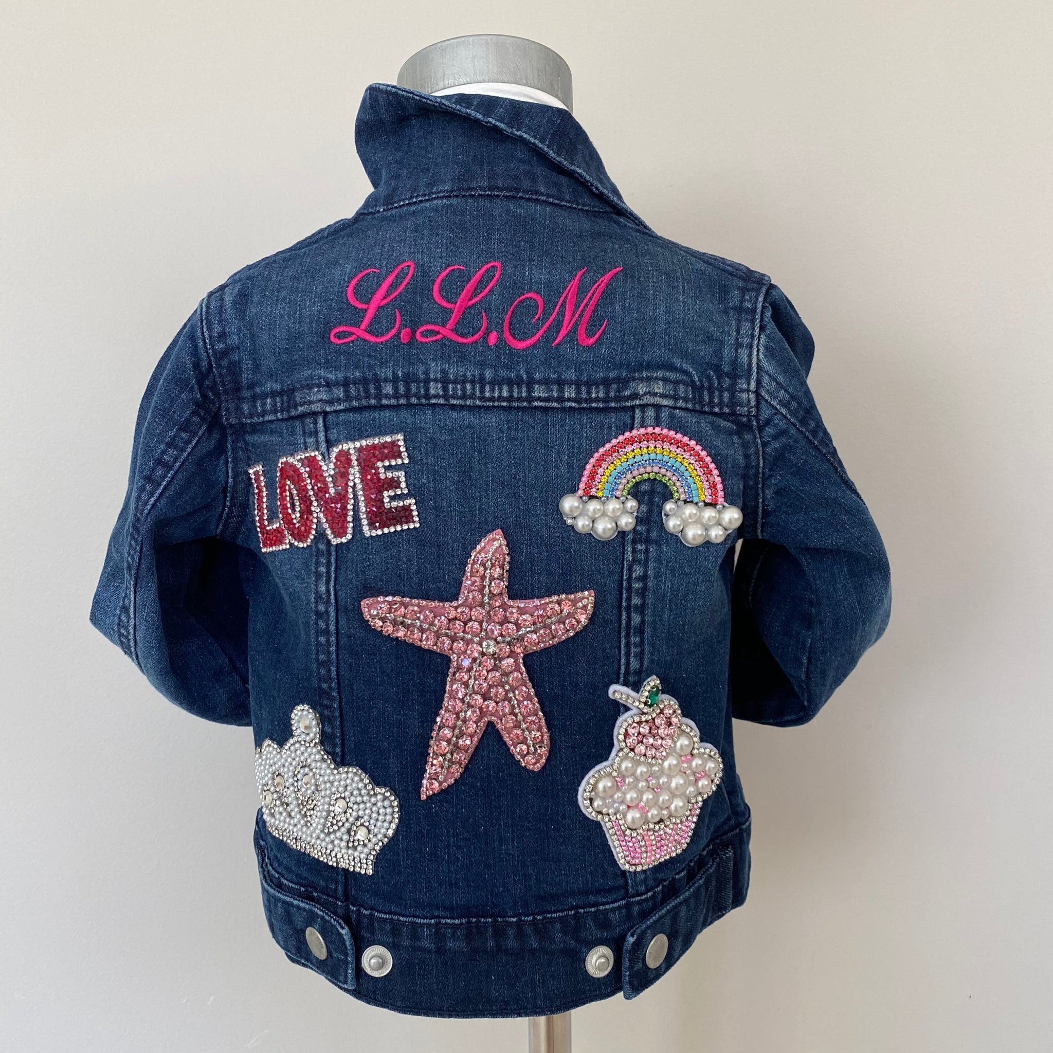 *Jacket on display in the photo is a size 1-2 in Original Blue Denim, and the Name Personalisation Font is Script in Hot Pink thread